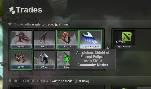 streaming pertandingan DOTA 2 ataupun melakukan penjualan item di DOTA